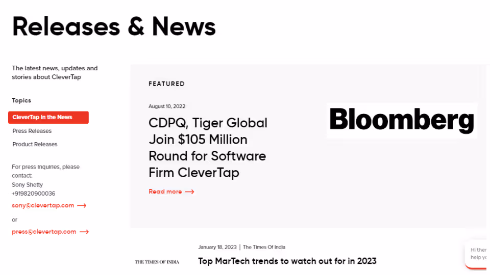 This landing page is dedicated to showcasing product releases, press releases, and news coverage of CleverTap.