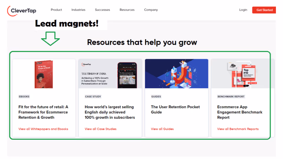 - Promote the lead magnet on your website, social media, and other marketing channels to attract your target audience. (Remember, how CleverTap showcased their ebooks & reports on their website?)
