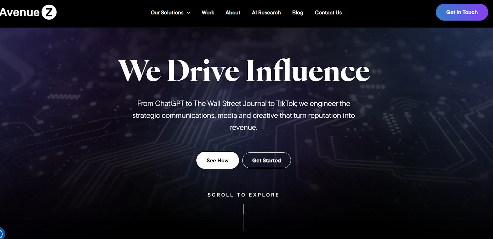 Avenue Z is a communications and marketing agency that operates at the intersection of PR, brand strategy, and digital visibility. They work with fast-growing and enterprise brands that care deeply about narrative control, reputation, and how they show up across both traditional media and modern AI-driven discovery channels.