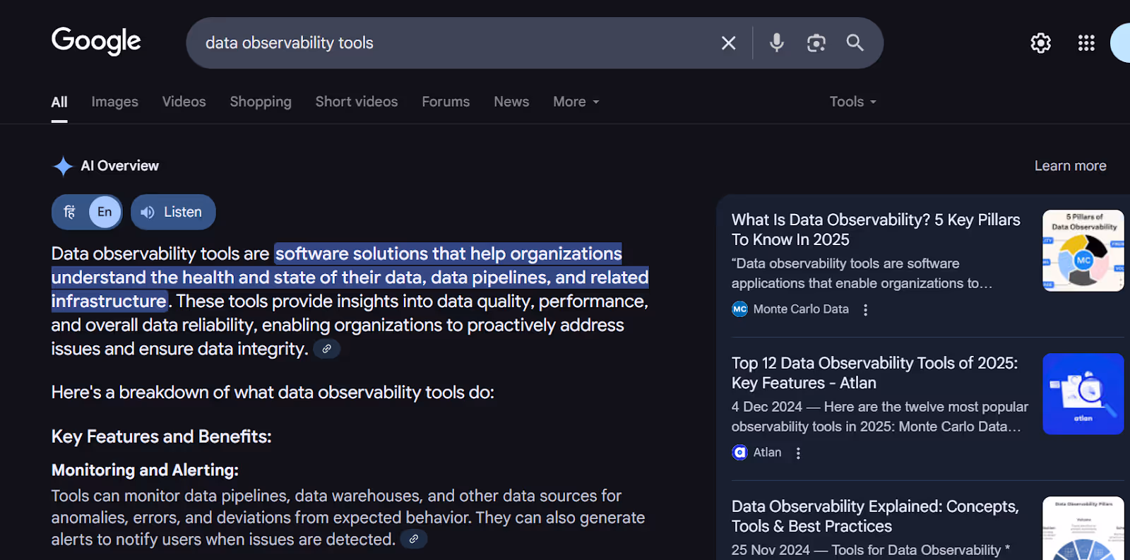 For example, Revv Growth partnered with Atlan to publish a resource-rich guide that secured multiple featured snippets and AI visibility, contributing significantly to organic traffic without paid media support.