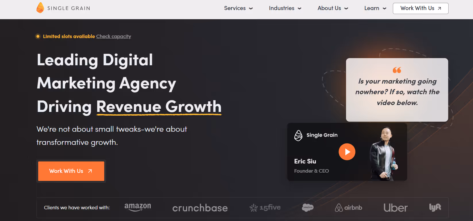 Ideal for tech-driven brands looking for an edge in organic and paid search, Single Grain combines AI workflows with hands-on strategy.