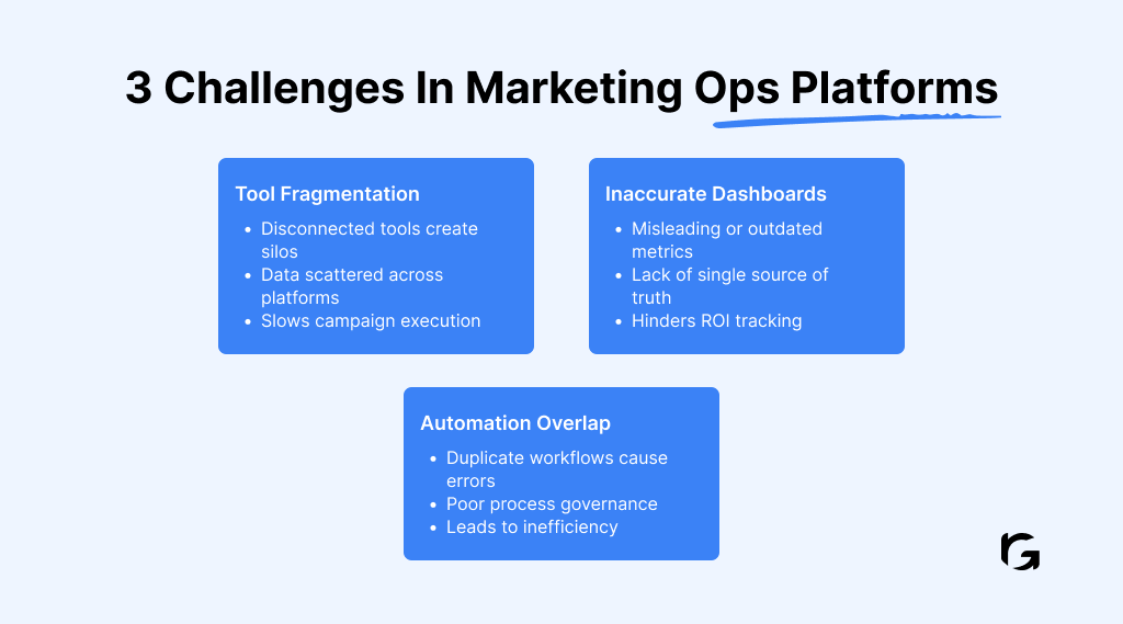 Even the best marketing ops platform cannot deliver results if your team struggles with common pitfalls. Here are the biggest challenges and how to fix them: